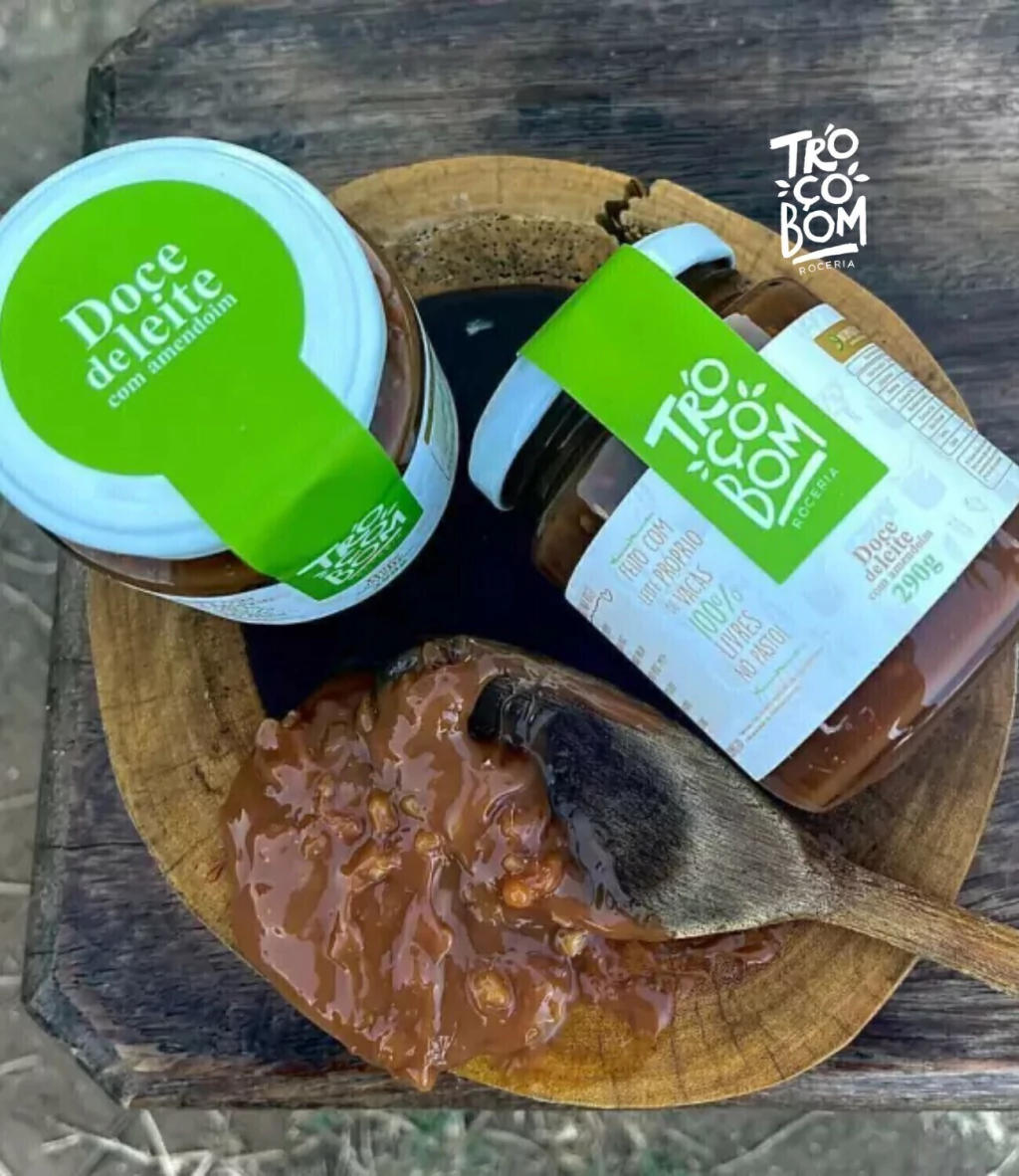 Doce de leite com pedacinhos de amendoim. Sem aditivos ou conservantes. Nosso doce tem textura cremosa e leve.