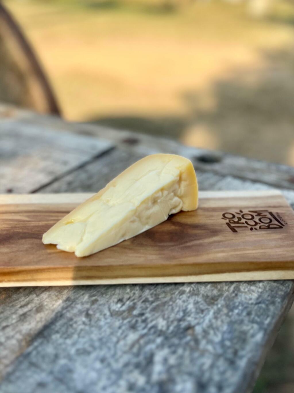 Queijo Artesanal Curado. Feito a partir de leite cru, com vacas criadas soltas no pasto.